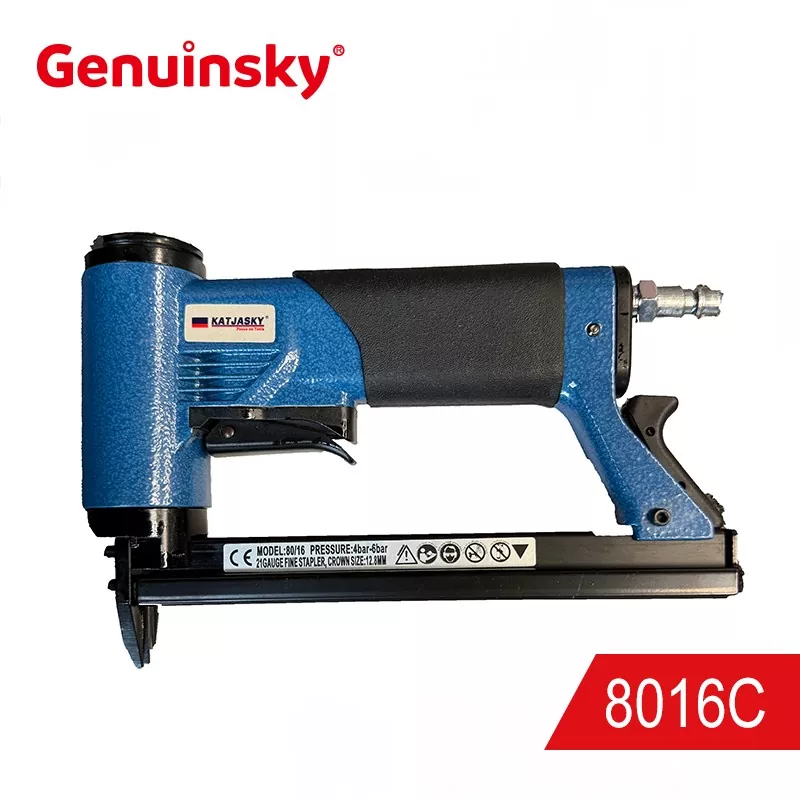 8016C Air Fine Crown Stapler thuộc 8016 Sê -ri Stapler, có chất lượng ổn định hơn và phổ biến trong việc sử dụng chuyên nghiệp hơn. Các máy lập phương được sử dụng để sửa móng tay hình chữ U hoặc móng tay lên bề mặt vật liệu thông qua các thiết bị khí nén như máy nén khí. Nó chủ yếu được sử dụng để chế biến và sản xuất vải ghế sofa hoặc vật liệu da, và để xử lý hàng loạt vật liệu nối. Nó là một công cụ thiết yếu cho các nhà máy chế biến da và nhà máy đồ nội thất.