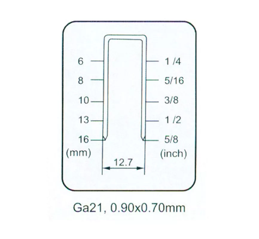 Các máy ghim không khí 8016 Series chủ yếu bao gồm 8016B Air Fine Crown Stapler, 8016C Air Fine Crown Stapler, 8016ln (Long mũi) Air Fine Crown Stapler, tất cả đều là súng bắn súng không khí hạng nặng cổ điển. Nail Ga21 phù hợp, 0,90x0,70mm, khoảng cách vai 12,7mm, chiều cao móng tay có thể là 6 mm, 8 mm, 10 mm, 13mm, 16mm (1/4, 5/16, 3/8, 1/2, 5/8 inch).