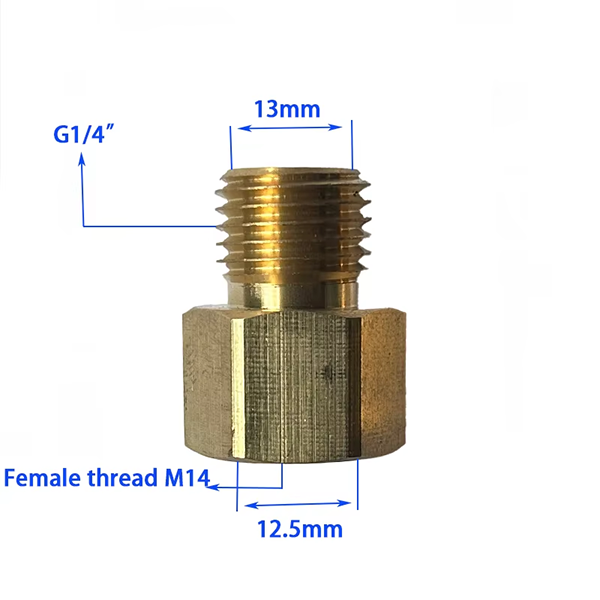 Kích thước của sản phẩm được thiết kế nghiêm ngặt theo kích thước tương ứng. Có hai thông số kỹ thuật để lựa chọn. Loại núm vú đầu tiên, một đầu là G1/4 inch, đường kính 13mm, đầu còn lại là ren cái M14×1.5, đường kính 12,5mm. Loại núm thứ hai, một đầu là ren Nam M14, đường kính 14mm, đầu còn lại là ren Nữ M14×1.5, đường kính 12,5mm, có thiết kế hình nón bên trong. Thiết kế của hình nón bên trong có thể được kết hợp chặt chẽ với bề mặt hình nón của khớp tương ứng để tạo thành vòng đệm thứ cấp một lần nữa, do đó độ kín và khả năng chịu áp lực của kết nối có thể được cải thiện đáng kể. Núm vú đồng thau côn M14x1.5 Nữ đến M14 Nam là chất liệu đồng thau có khả năng chống ăn mòn và áp suất mạnh. Vận chuyển chất lỏng đòi hỏi môi trường ẩm ướt lâu dài và dễ xảy ra phản ứng hóa học. Vì vậy, đặc tính của chất liệu đồng thau có thể giữ cho nó ổn định và không dễ bị rỉ sét, gãy, điều này ảnh hưởng đến toàn bộ quy trình làm việc. Nó cũng kéo dài tuổi thọ của sản phẩm và giảm chi phí thay thế thiết bị.