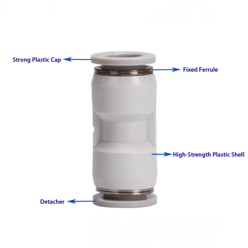 Sau đây là phần giới thiệu về một số tính năng quan trọng của Dòng phụ kiện kết nối nhanh đa thông số kỹ thuật. Tính năng đầu tiên là thành phần của chính sản phẩm. Bản thân khớp bao gồm một cấu trúc bốn lần. Cấu trúc nặng đầu tiên là nắp nhựa chắc chắn. Khuôn ép phun nhựa kỹ thuật có độ bền cao giúp bản thân sản phẩm vừa chịu được áp suất cao vừa có khả năng chống mài mòn, mang lại tác dụng bảo vệ nhất định cho mặt trên của sản phẩm. Cấu trúc quan trọng thứ hai là ống đựng thẻ cố định. Ống đựng thẻ cố định làm bằng thép không gỉ có khả năng chống ăn mòn cực tốt, đồng thời khóa khí quản cũng rất chắc chắn để không bị rơi ra trong quá trình sử dụng. Cấu trúc nặng thứ ba là lớp vỏ nhựa có độ bền cao. Thân chính của sản phẩm được làm bằng nhựa kỹ thuật gia cố, có khả năng chịu áp lực vượt trội và cách nhiệt tốt. Cấu trúc quan trọng thứ tư là bộ phát hành. Thiết kế của bộ nhả cho phép người vận hành dễ dàng nhận ra việc tháo rời khí quản bằng cách nhấn. Đồng thời, thiết kế tiện dụng và giúp thao tác thuận tiện hơn. Đặc điểm thứ hai là năm dạng cấu trúc của sản phẩm. Chúng là loại thẳng, loại ba chiều loại T, loại bốn chiều chéo, loại ba chiều loại Y và loại nhiều chiều. Các dạng cấu trúc này từ các kết nối đơn lẻ đến các pha nguy hiểm phức tạp, về cơ bản đáp ứng nhu cầu bố trí đường ống khí nén trong các tình huống khác nhau một cách toàn diện, giúp thiết kế hệ thống linh hoạt và hiệu quả. Tính năng thứ ba là thích ứng đa thông số kỹ thuật. Đầu nối hỗ trợ sáu loại đường kính ngoài khí quản: 4mm, 6 mm, 8 mm, 10 mm, 12 mm và 16mm, có thể khớp với khí quản PU và ống nylon thông thường, đồng thời khớp chính xác với khí quản và thiết bị. Từ các bộ phận vi khí nén đến thiết bị quy mô lớn, có thể đáp ứng nhu cầu về đường kính ống dẫn khí.