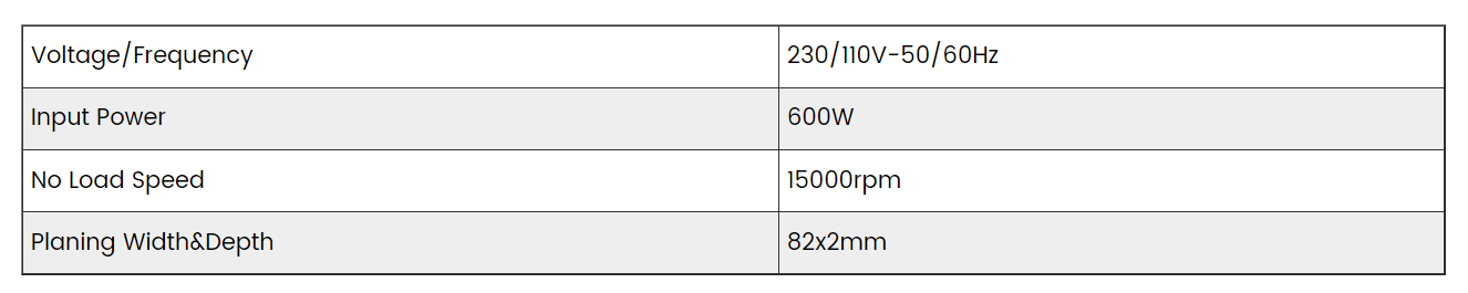 Tại sao Máy bào điện 82x2mm là một công cụ chế biến gỗ hiệu quả có thể được giới thiệu từ nhiều khía cạnh. Đánh giá từ các thông số cốt lõi của sản phẩm, thứ nhất, điện áp rộng 230/110V-50/60Hz không chỉ có thể thích ứng với hệ thống cấp điện dân dụng 220V ở Trung Quốc mà còn phù hợp với môi trường làm việc 110V ở nước ngoài và chênh lệch tần số 50/60Hz giữa các vùng khác nhau, do đó, dù là nhu cầu công việc trong nước hay sử dụng thiết bị nhập khẩu, vẫn có thể đạt được kết nối tốt, giảm sự chênh lệch giữa điện áp và Tính thường xuyên. Thứ hai, công suất đầu vào định mức 600W có thể giúp thiết bị có đầu ra ổn định liên tục, đồng thời có đủ năng lượng dự trữ để bào ổn định khi đối mặt với vật liệu tương đối cứng và dày, có thể tránh được sự mất ổn định trong công việc do tải quá mức, nhờ đó hiệu quả và chất lượng công việc có thể trực tuyến cùng một lúc. Thứ ba, tốc độ không tải 15.000 vòng/phút có thể giúp máy bào có tốc độ đường cắt cao, có thể nhanh chóng lập kế hoạch cắt mịn khi chế biến gỗ. Đồng thời, tốc độ xử lý vật liệu có thể rất nhanh nên rất quan trọng khi xử lý nhiều công việc, giúp cải thiện đáng kể hiệu quả công việc. Thứ tư, chiều rộng bào 82mm có thể giảm số lần di chuyển khứ hồi khi xử lý bề mặt gỗ tương đối rộng, giúp tiết kiệm thời gian. Độ sâu bào 2 mm có thể đáp ứng nhu cầu gia công thô và hoàn thiện hai chiều, không chỉ có thể thực hiện cắt tỉa tinh xảo mà còn loại bỏ gỗ thừa trong quá trình xử lý. Có thể thấy, chiếc Máy bào điện 82x2mm này có nhiều ưu điểm cốt lõi nên nó có những trọng trách quan trọng trong lĩnh vực chế biến gỗ.