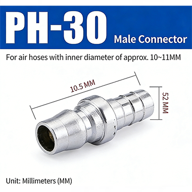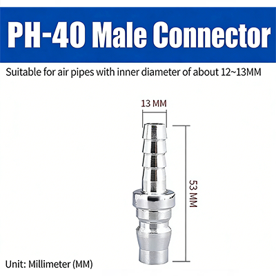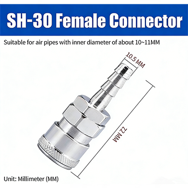 Khớp nối nhanh loại C dòng PH–SH với ren JIS PT có cấu trúc phích cắm nhanh loại C. Đầu nam và đầu nữ có thể ghép theo ý muốn, khi cắm điện có thể kết nối, rất tiện lợi. Khớp được xử lý mạ điện bề mặt, với lõi đồng bên trong, không chỉ chống ăn mòn mà còn chống mài mòn, giúp cải thiện độ bền của khớp và kéo dài tuổi thọ sử dụng.