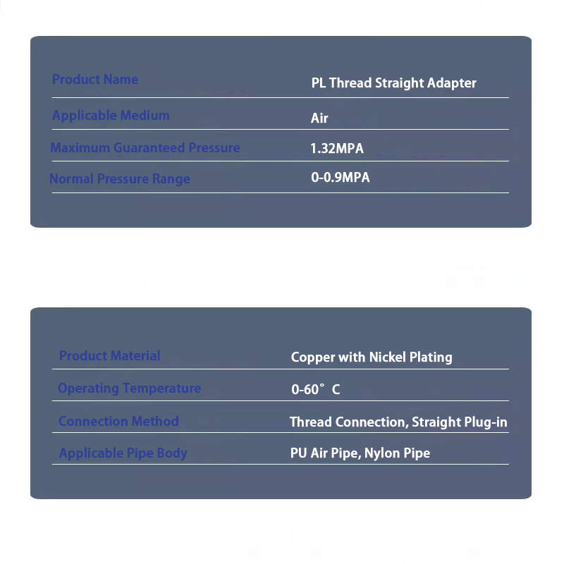 Bộ chuyển đổi thẳng ren PL và ống thậm chí có thể xoay 360° tự do sau khi lắp đặt, điều đó có nghĩa là nó có thể phá vỡ giới hạn của việc cố định góc khớp truyền thống. Nó có thể thích ứng với xu hướng đường ống phức tạp và các tình huống áp dụng của sản phẩm sẽ mở rộng hơn. Đồng thời, sản phẩm có khả năng thích ứng với các tình huống khác nhau. Ví dụ, nó cũng có thể duy trì hiệu suất ổn định trong dây chuyền sản xuất ở nhiệt độ cao, vì phạm vi dung sai của bản thân sản phẩm nằm trong khoảng nhiệt độ 0-60°C. Ngoài ra, áp suất đảm bảo tối đa có thể đạt tới 1,32MPa và phạm vi áp suất làm việc bình thường là 0-0,9MPa, có thể đáp ứng đầy đủ hoạt động ổn định của các thiết bị yêu cầu điều kiện làm việc áp suất cao như dụng cụ khí nén và xi lanh tự động.