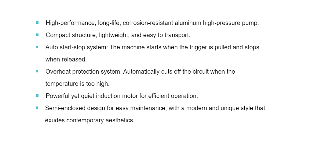 Thứ hai, Máy phun rửa cao áp di động STG-ROCK-K sử dụng cấu trúc tổng thể nhỏ gọn và trọng lượng tổng thể của máy rất nhẹ. Trọng lượng tịnh của K3 là 10kg, còn trọng lượng tịnh của K4 là 12kg, cả hai đều được trang bị thiết kế tay cầm phía trên rất tiện lợi. Người dùng có thể di chuyển tùy theo nhu cầu làm sạch của mình, từ nhà đến ngoài trời. Đồng thời, thiết bị còn được trang bị chức năng thông minh tự động khởi động-dừng và bảo vệ quá nhiệt. Bóp cò súng phun để bắt đầu và nhả cò súng để dừng. Không cần chuyển đổi thủ công, giúp thao tác thuận tiện hơn. Bảo vệ quá nhiệt cho phép thiết bị tự động ngắt mạch khi nhiệt độ quá cao, tránh tình trạng quá tải gây hư hỏng máy, nâng cao độ an toàn tổng thể, giúp sản phẩm an toàn hơn, không lo lắng hơn trong quá trình sử dụng. Thiết kế nửa kín của thân máy bay cũng rất nhân văn, thuận tiện cho việc bảo trì hàng ngày, có thể dễ dàng kiểm tra các bộ phận và vệ sinh bộ lọc.